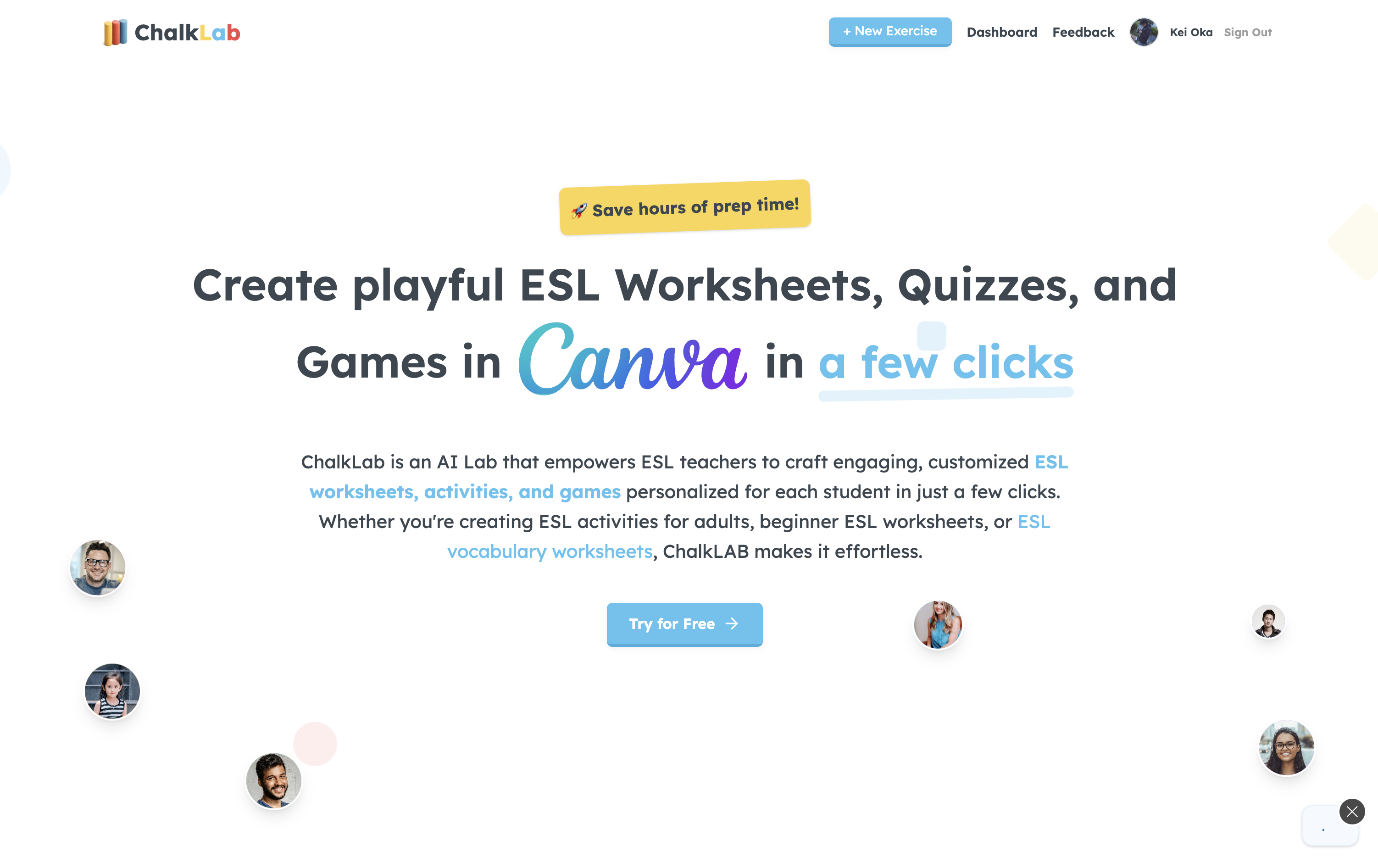 ChalkLab is an AI-powered tool for ESL teachers to generate customized worksheets, quizzes, vocabulary activities, and games in seconds. Integrates with Canva, Miro, and Google Docs, and tracks student progress with real-time reports.