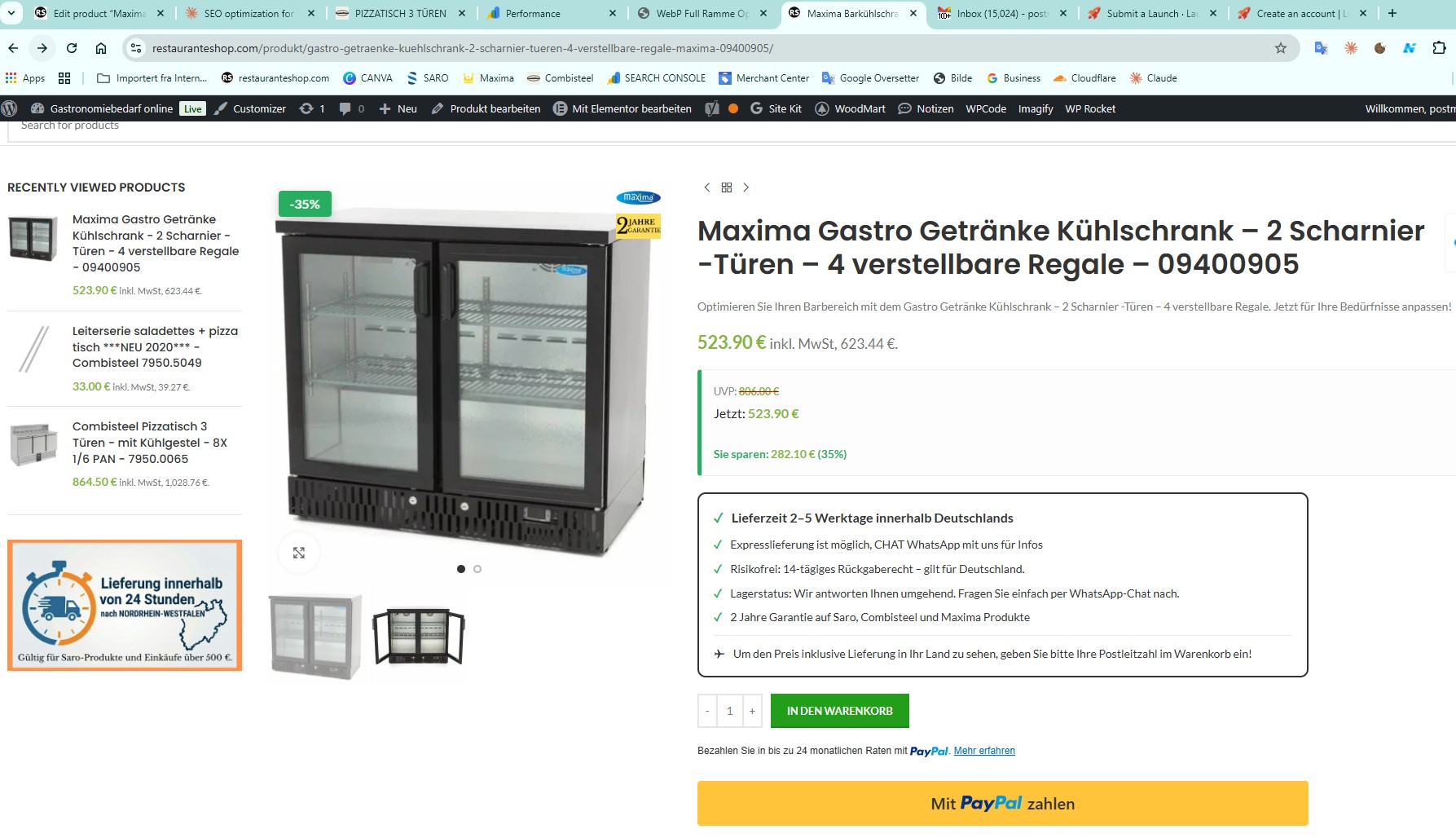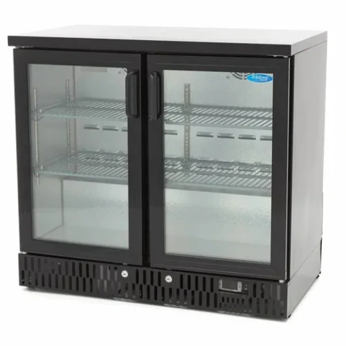 Maxima BC 2 09400905 – 227L, 2 Doppelglastüren, schwarz, 0–12°C, Dixell, LED, Schloss, R600a, 230V. Innenraum Aluminium.