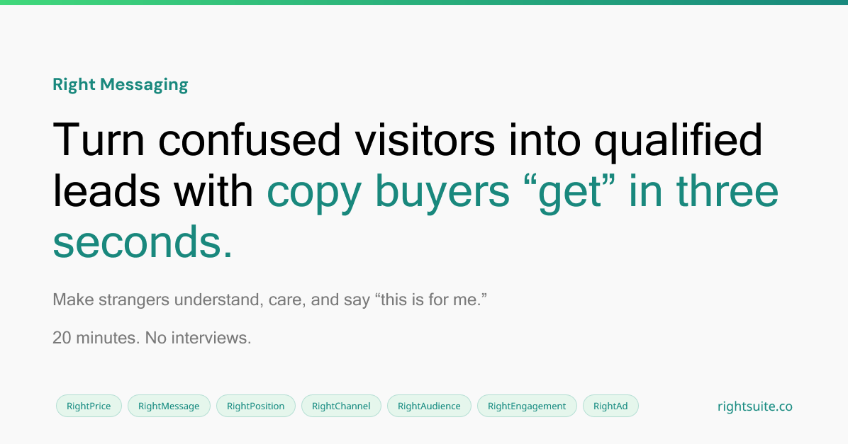 RightMessaging helps SaaS teams stop guessing whether their landing page copy works and start seeing it through their buyer’s eyes. Most visitors give you 10 seconds before deciding to stay or bounce — and 68% leave without scrolling past the hero. You rarely know why. With RightMessaging, you paste your headline, body copy, or CTA and describe your ideal customer: their role, stage, and core pain. Your page is then read by hundreds of simulated buyers modeled on that customer. We surface their internal monologue in plain language: what caught their attention, what confused them, where they stopped reading, and which phrases triggered skepticism. You get a message clarity score, the exact sections causing drop‑off, and specific, reasoned rewrites you can apply instantly. Instead of shipping copy and hoping it lands, you can iterate toward a version that matches what your buyers already believe — and keeps them on the page long enough to convert.